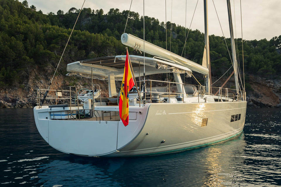 The luxury charter rental includes captain and assistant to offer the best personalized service. Among the extras, it includes a motorized auxiliary dinghy, paddle surfing, diving equipment and many other activities to enjoy an unforgettable experience on board the Hanse 675 during your holidays in Mallorca.