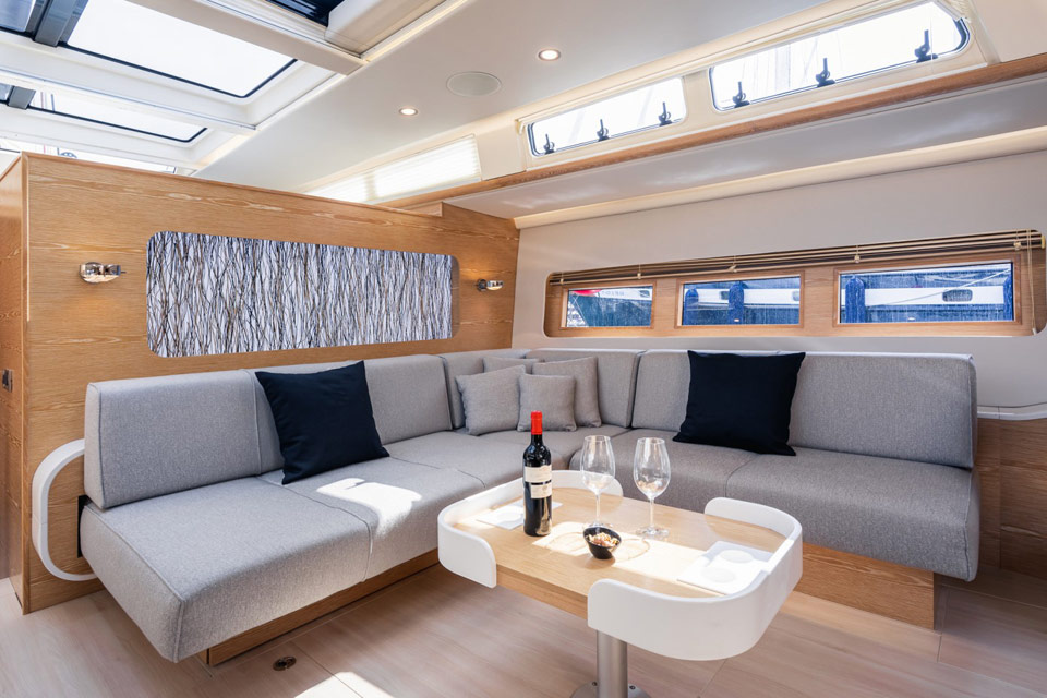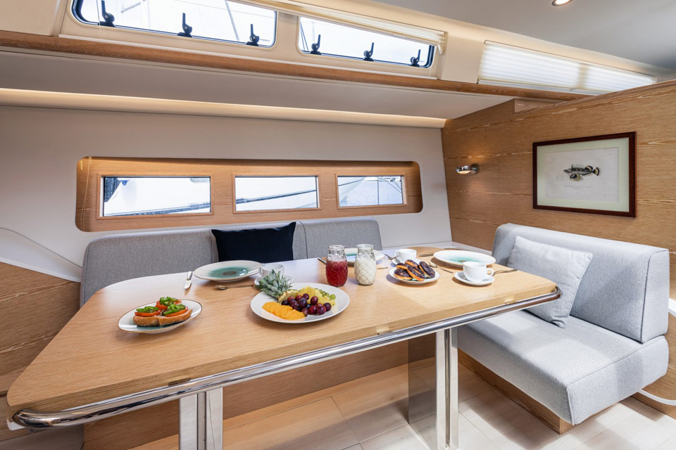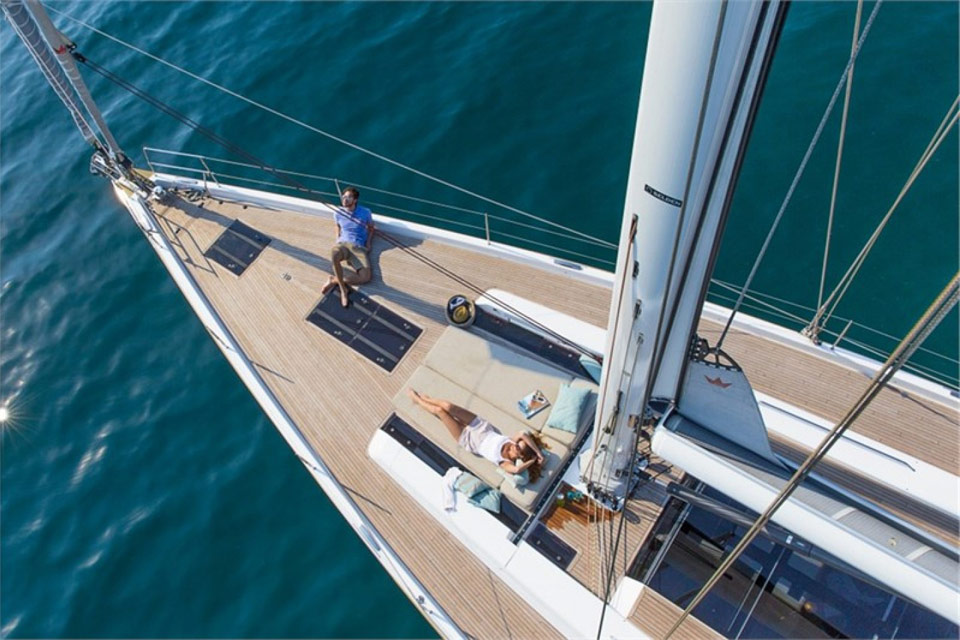 The luxury charter sailboat has a large solarium area in the bow (to lie down and enjoy sunbathing) and its large table in the stern, they are a perfect combination to be able to enjoy a good meal on the boat as a group, or endless meetings between friends or family.